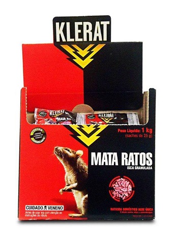 Klerat granulado: (isca peletizada) – caixa com 10kg (sachês de 25g)