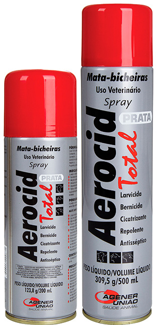 Aerocid Total combina em sua formulação princípios ativos com ação complementar no combate às bicheiras. O clorfenvinfós é um potente larvicida, com ação desalojante que provoca a eliminação rápida das larvas das feridas. A cipermetrina, além da ação larvicida, possui efeito repelente. A sulfadiazina de prata é bastante conhecida por suas ações antisséptica e cicatrizante. Aerocid Total adere às feridas sem escorrer e marca o local tratado. Além disso, sua válvula multidirecional permite a aplicação mesmo com o frasco invertido. O produto é indicado para o tratamento de ferimentos em geral, na prevenção e tratamento das miíases (bicheiras), nas afecções dos umbigos dos recém-nascidos, castrações, descorna e marcação. É indicado também no tratamento e prevenção das infestações por ectoparasitas sensíveis á formulação.