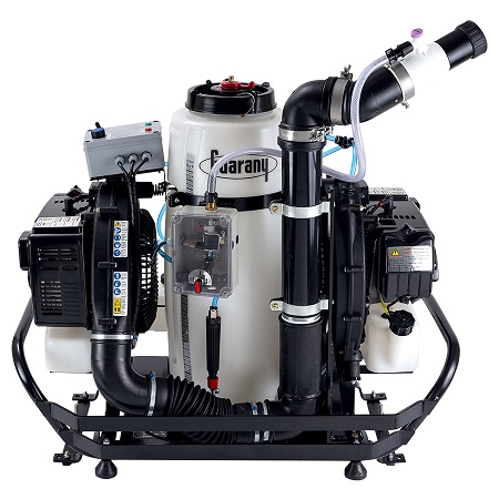 Com a sintonia de dois motores Kawasaki 2T (dois tempos), excluímos a necessidade de um compressor para geração de gotas.