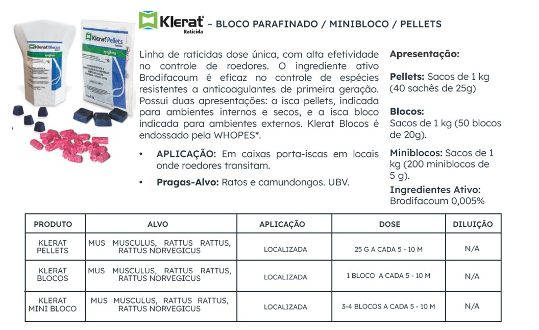 Linha Klerat de raticidas Syngenta oferece eficácia garantida e qualidade assegurada, além de todo